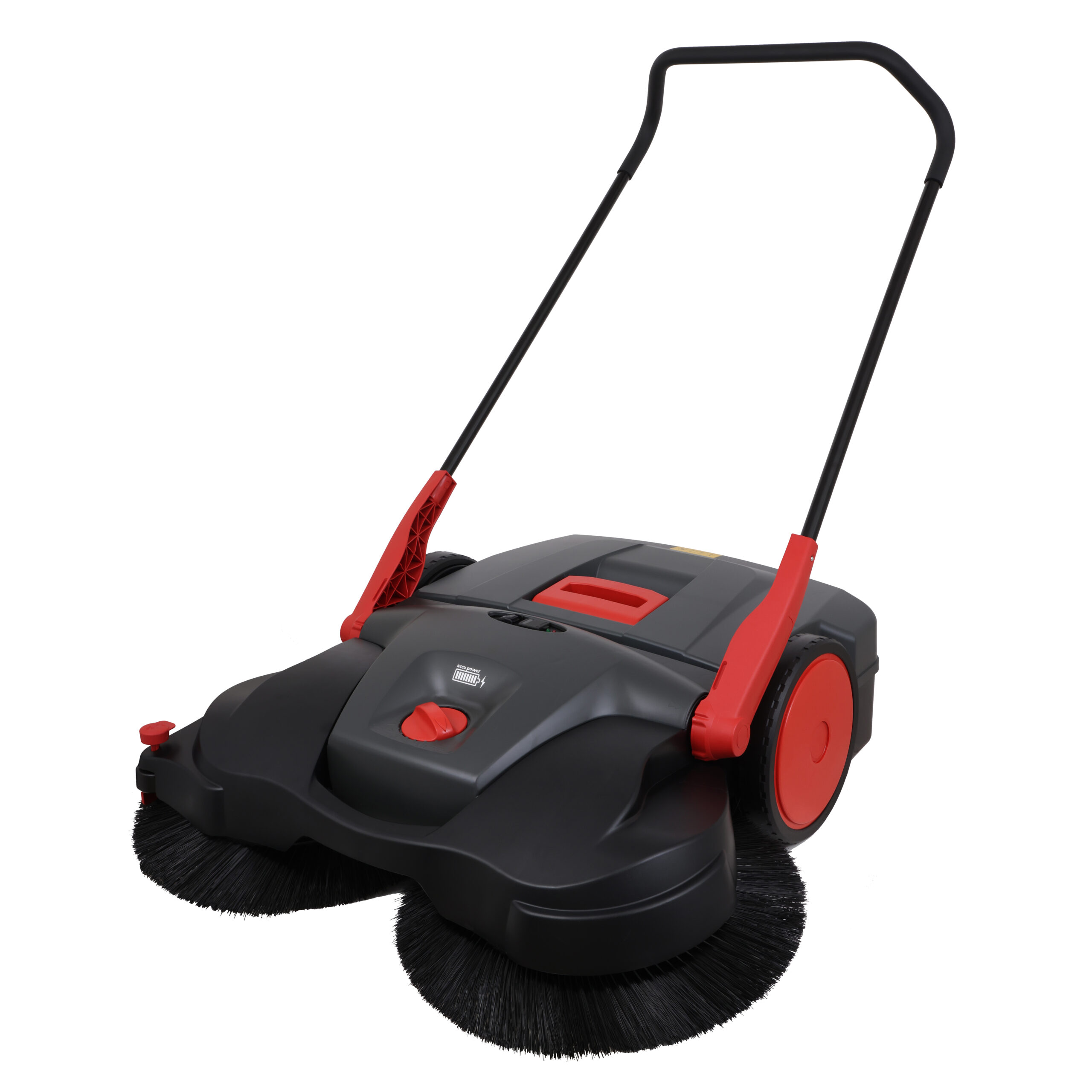 The two front brushes rotate in opposite directions, grabbing the debris directly in front of the sweeper while the brush roller on the bottom picks up all the fine particles. All the debris is then deposited into the large, easy-to-empty 13.2-gallon container.